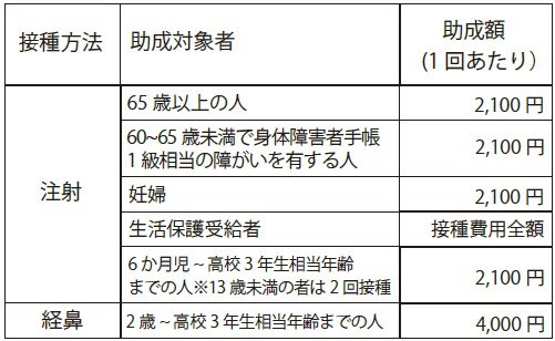 ※インフルエンザ予防接種、新型コロナワクチン接種の自己負担額は、医療機関ごとに異なりますので、希望する医療機関にお尋ねください。
