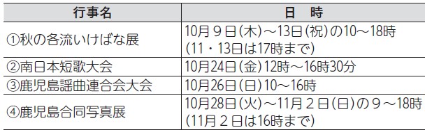 場所:(1)山形屋、(2)勤労者交流センター(よかセンター)、(3)カクイックス交流センター、(4)県歴史・美術センター黎明館