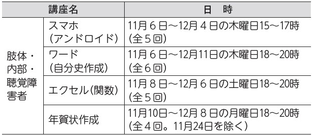 申込み:電話かファクス、メールで10月24日までにゆうあい館【電話】252-7900【FAX】253-5332【E-mail】[email protected]へ