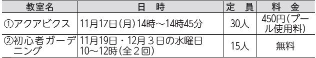 申込み:往復はがきか同施設HPで10月24日(消印有効)までに同施設へ