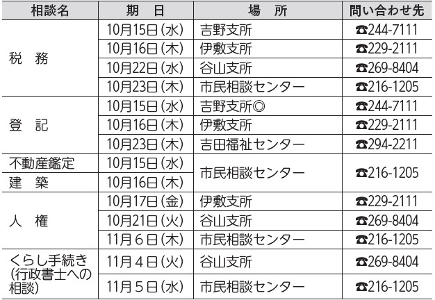 ・市民相談センター【電話】216-1205(オンラインでも実施。希望する人は事前にご相談を)