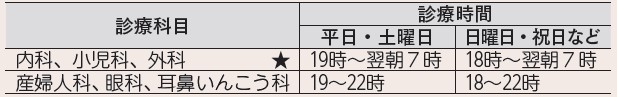 *産婦人科、眼科、耳鼻いんこう科は、医師が常駐していませんので、事前に連絡してください