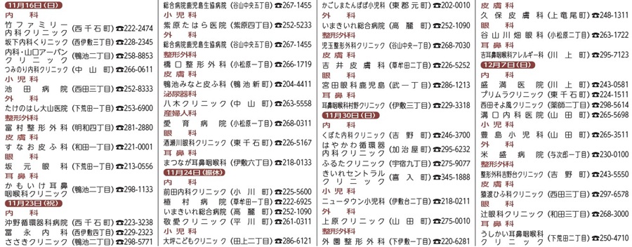 ・夜間急病センター(鴨池二丁目)【電話】214-3350