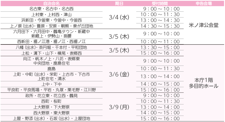 以下の日程でも申告を受付します。