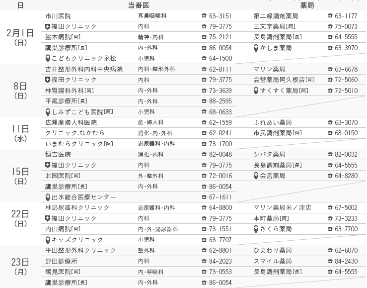 2.受診は急患に限ります。[夜間は出水総合医療センターor出水郡医師会広域医療センター]
