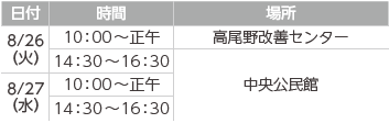 日時:8/14(木)10:00~正午