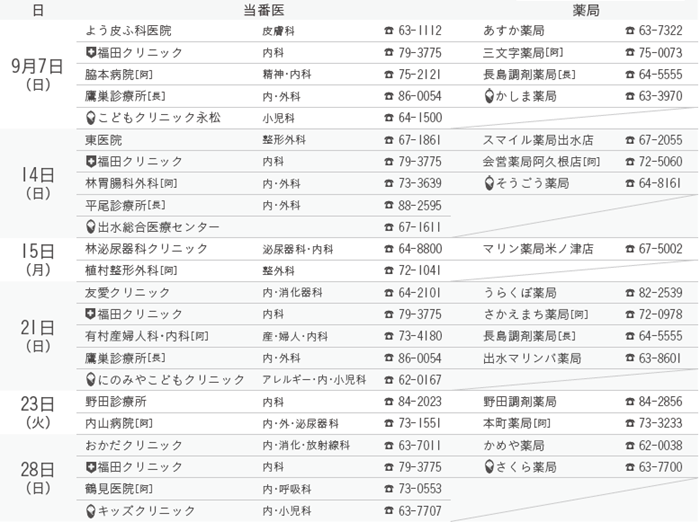 2.受診は急患に限ります。[夜間は出水総合医療センターor出水郡医師会広域医療センター]