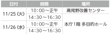 申込:11/14(金)までに電話申込 ※土日祝除く