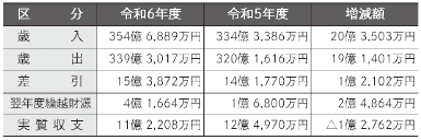 市の一般会計の歳入総額は354億6,889万円、歳出総額は339億3,017万円となり、差引額は15億3,872万円となりました。この額から翌年度への繰越財源4億1,664万円を除くと、実質収支は11億2,208万円となり、令和5年度比で1億2,762万円の減となりました。