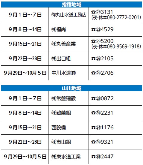 くらし 水道工事当番店 32/38 前の記事 次の記事 発行日 : 2025年09月01日 自治体名 : 鹿児島県指宿市 広報紙名 : 広報いぶすき 2025年9月号 ※水道工事に関する当番店です。下水やトイレの詰まりなどは、なじみの工事店にお願いしてください。宅地内の漏水もできるだけ設置業者へ修理依頼をお願いします。 Tweet シェアする 日曜・祝日当番医/日曜・祝日薬局 人のうごき