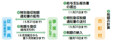特別徴収(給与天引き)の方法による納税のしくみ