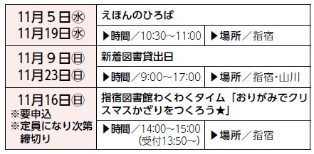 日時:11月16日(日)10:30~11:15(受付10:15~)