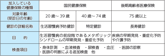 ※健診の詳細名称は受診時の年齢によって異なります。