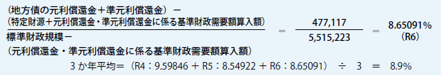 一般会計等が負担する元利償還金および準元利償還金(※6)の標準財政規模を基本とした額に対する比率。
