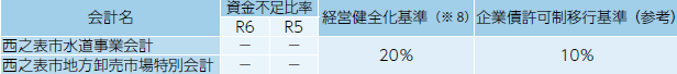 本市の公営企業会計は次のとおり、資金不足はありません。