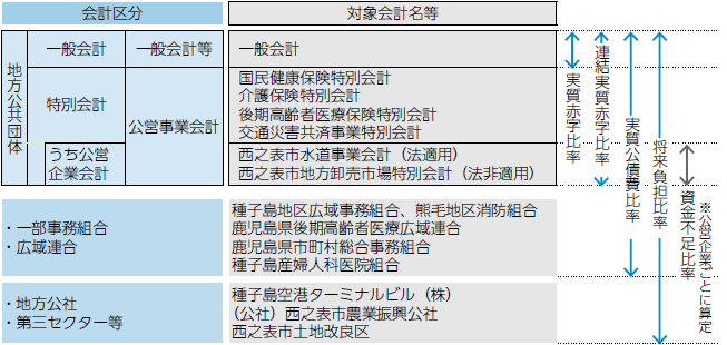 健全化判断比率の対象となる会計の範囲を図示すると、次のとおりです。