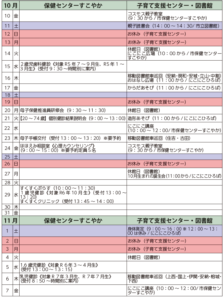 くらし 10月保健センターすこやか・子育て支援センター・図書館 6/6 前の記事 発行日 : 2025年10月10日 自治体名 : 鹿児島県西之表市 広報紙名 : 広報にしのおもて 市政の窓 お知らせ版 令和7年10月10日号 Tweet シェアする その他のお知らせ(広報にしのおもて 市政の窓 お知らせ版 令和7年10月10日号)
