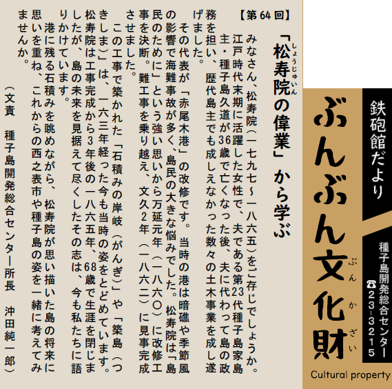 文化 鉄砲館だより ぶんぶん文化財【第64回】 15/24 前の記事 次の記事 発行日 : 2025年10月25日 自治体名 : 鹿児島県西之表市 広報紙名 : 広報にしのおもて 市政の窓 2025年11月号 Tweet シェアする 持続可能な地域づくり まなび~の輪 No.273