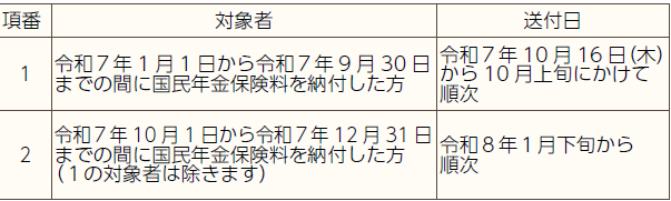 A3.令和7年中(令和7年1月1日から令和7年12月31日)に、国民年金保険料を納付した方(被保険者ご本人あて)にお送りします。