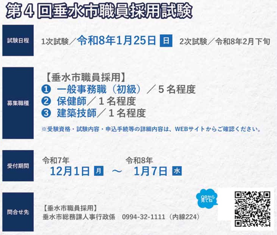 しごと 第4回垂水市職員採用試験 31/40 前の記事 次の記事 発行日 : 2025年12月01日 自治体名 : 鹿児島県垂水市 広報紙名 : 広報たるみず 令和7年12月号 Tweet シェアする 【Pick Up 3】「つらさげの里うのばい 収穫祭」開催! 広報たるみずお便り 読者の思い