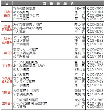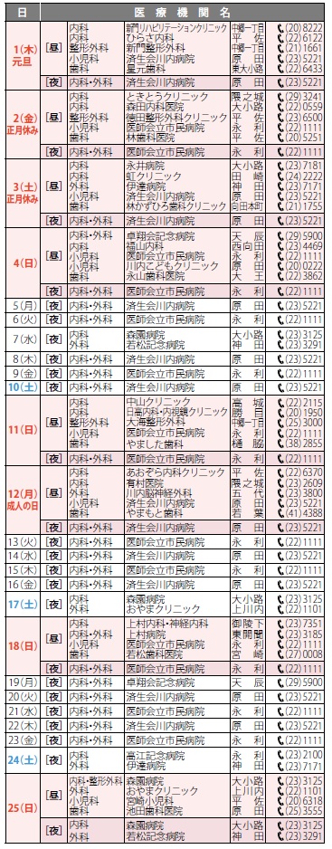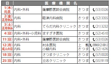 ・急きょ変更になる場合がありますので、受診する医療機関へ連絡の上、受診してください。最新の情報は、デジタル広報薩摩川内のウェブサイトか、消防テレフォンサービス【電話】27-1199で確認いただけます。