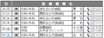 ・医師会立市民病院の平日の夜間救急当番日における小児診療については、事前に電話で問い合わせください。