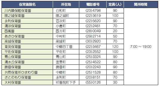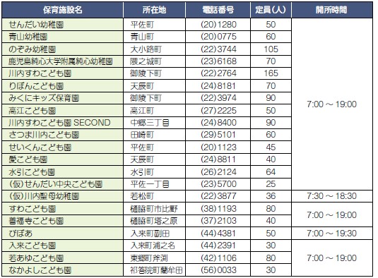 ※へき地保育所(里保育園、下甑保育園)については、申込方法などが異なりますので、甑島振興局、下甑支所に直接お問い合わせください。