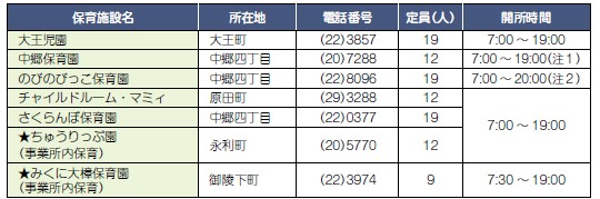 ※地域型保育施設のみくに大樟保育園の地域枠は、1歳児からの受け入れになります。