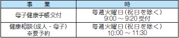 ※川内地域以外の母子健康手帳交付および健康相談(成人・母子)については、随時実施しますので樋脇、入来、東郷、祁答院地域は川内保健センターへ、甑島圏域は甑島振興局へご連絡ください。