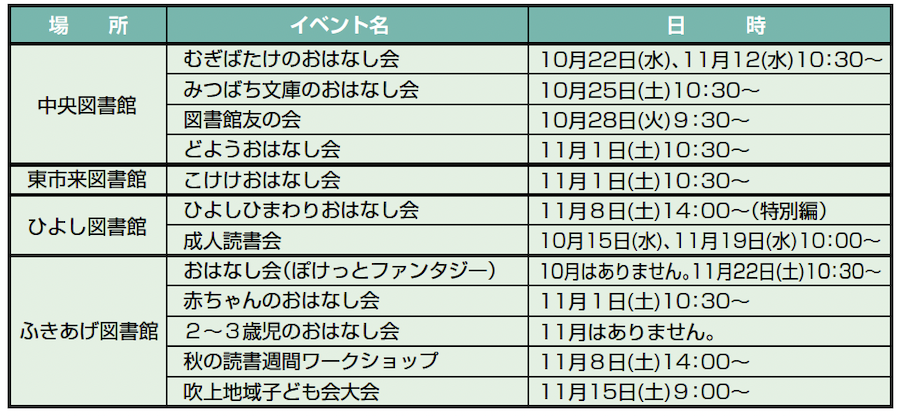 ふきあげ図書館「おはなしのへや」でお待ちしております。