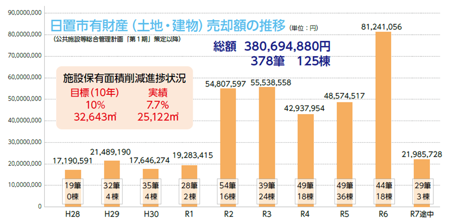 公共施設の保有面積および維持管理コストを10年間で10%削減することを目標としており、未利用財産については売却による処分を積極的に進めています。売却された公共施設の中には、民間事業者によって新たに生まれ変わっている施設もあり、単に売却するだけではなく、眠っていた公共施設が新たな拠点として有効活用されています。