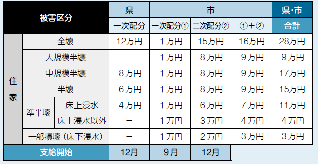 本義援金は原則、市災害見舞金の申請に基づき、見舞金と併せて支給します。見舞金の申請がまだ済んでいない世帯は申請をお願いします。また、罹災(りさい)証明書の交付を受けたものの、申請書が届いていない世帯は申請書が届き次第、手続きをお願いします。