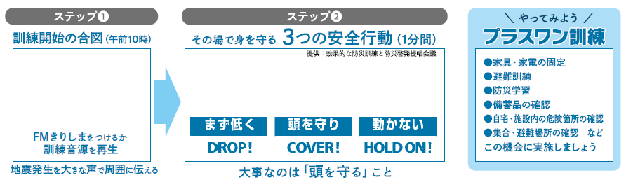 昨年8月に日向灘で地震が発生し、本市でも最大震度5弱の大きな揺れを観測しました。突然発生する地震に慌てず、身を守る行動ができるよう、「市全体で取り組む地震訓練(シェイクアウト訓練)」を実施します。「誰でも」「その場で」できる防災訓練に参加ください。事前に災害時にとるべき行動などを学習し、防災知識を習得しましょう。