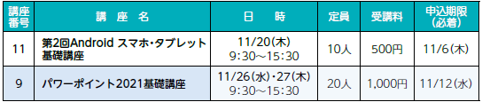 期間:11月19日~12月10日(毎週水曜・全4回)