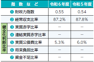 ※「-」の表記は、赤字額、将来負担比率、資金不足額がないため、記載すべき比率がないことを表します。