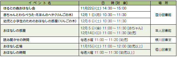 内容:読み聞かせ、紙芝居、パネルシアターなど