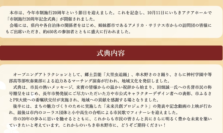 くらし 市制施工20周年記念式典 ~これまでも、これからも~ 1/33 次の記事 発行日 : 2025年10月20日 自治体名 : 鹿児島県いちき串木野市 広報紙名 : 広報いちき串木野 令和7年10月20日号(第240号) ※詳しくは本紙をご覧ください。 Tweet シェアする JR串木野駅周辺開発に関する市民アンケート