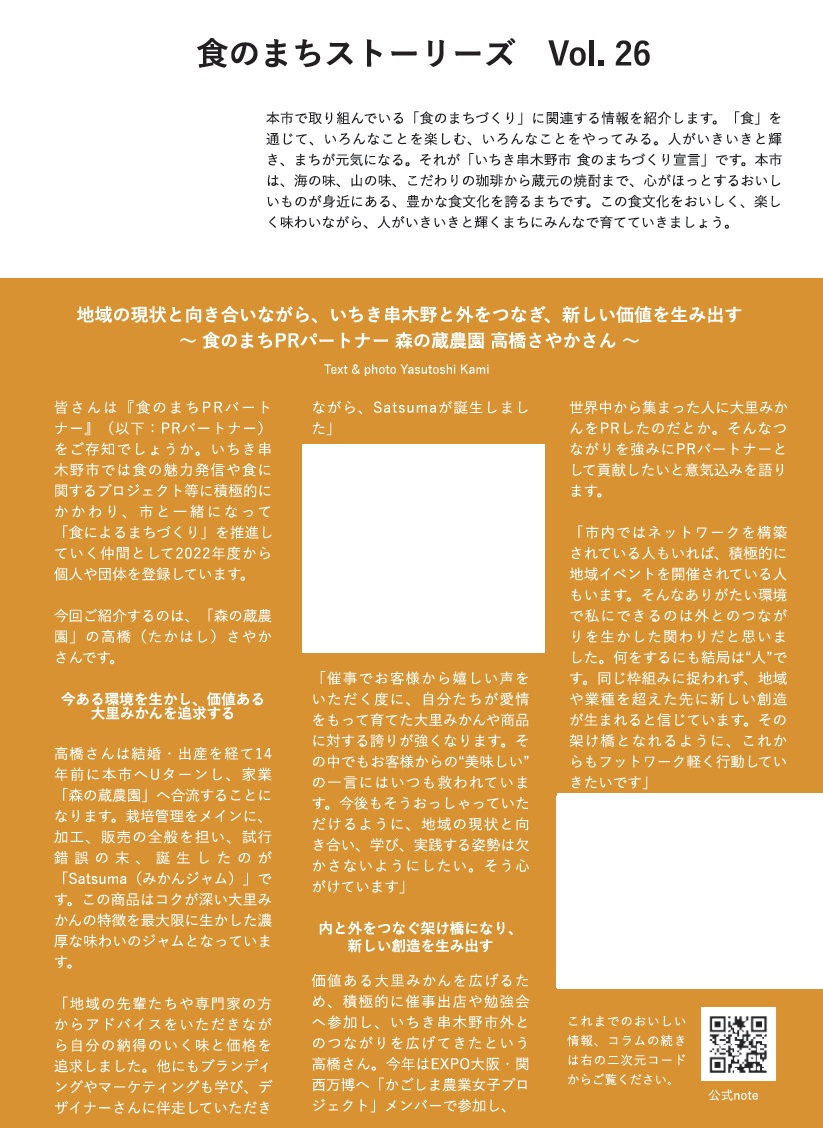 くらし おいしく、ひといき。~食のまち いちき串木野~ 9/33 前の記事 次の記事 発行日 : 2025年10月20日 自治体名 : 鹿児島県いちき串木野市 広報紙名 : 広報いちき串木野 令和7年10月20日号(第240号) Tweet シェアする 第3回 カレンダーフォトコンテスト 結果発表 まちの話題 township talk