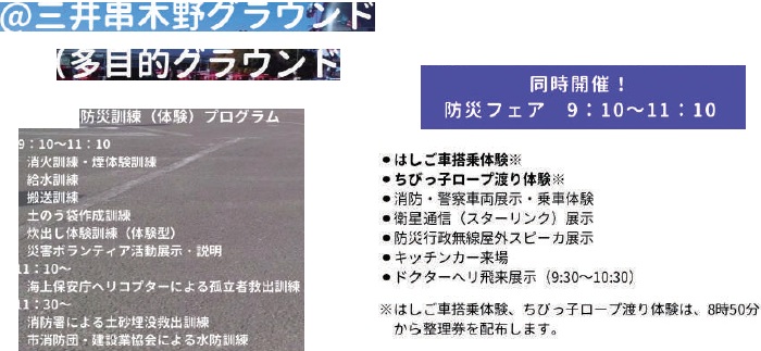 イベント いちき串木野市 防災訓練・防災フェア 3/29 前の記事 次の記事 発行日 : 2025年11月20日 自治体名 : 鹿児島県いちき串木野市 広報紙名 : 広報いちき串木野 令和7年11月20日号(第241号) 11月30日(日)9:00~12:30 Tweet シェアする わがまちの輝きびと おいしく、ひといき。~食のまち いちき串木野~