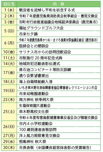 くらし 市長の主な動き(10月) 8/29 前の記事 次の記事 発行日 : 2025年11月20日 自治体名 : 鹿児島県いちき串木野市 広報紙名 : 広報いちき串木野 令和7年11月20日号(第241号) Tweet シェアする まちの話題 township talk(2) 市政ニュース CIVIC NEWS