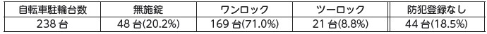 全国地域安全運動の一環として10月16日実施した市内3駅に設置された駐輪場の「自転車防犯診断」の結果は次のとおりでした。