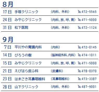 ・都城市・北諸県郡管内の休日の救急診療機関【電話】0986-23-5555(テープ案内)