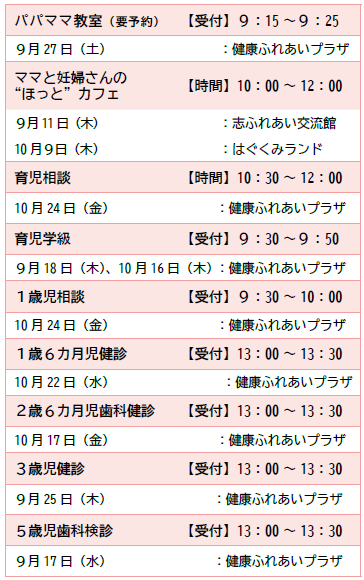 子育て 健康カレンダー(9月・10月) 26/51 前の記事 次の記事 発行日 : 2025年09月13日 自治体名 : 鹿児島県志布志市 広報紙名 : 市報しぶし 2025年9月号 ※母子健康手帳をもらうためには事前申込が必要です。 Tweet シェアする みんなの健康メモ(Health up for Smile!) 日曜・祝日当番医