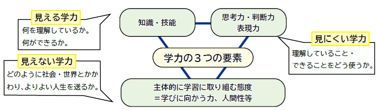 「知識・技能」、「思考力・判断力・表現力」、「学びに向かう力、人間性等」のバランスのとれた学力の育成を図るために、次の取組を大切にします。