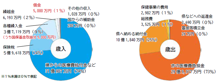 令和6年度国保会計の収支状況は、歳入総額から歳出総額を引いた形式収支額9,165万円から前年度繰越金、国保基金(国保会計の貯金)からの取り崩し、借金などを差し引いた実質単年度収支額はマイナス7千万円の赤字となり、非常に厳しい財政運営を強いられています。