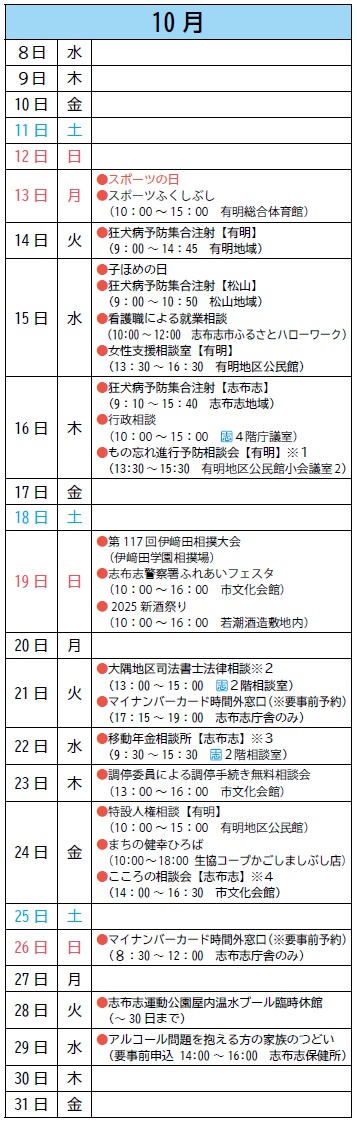 ※2 事前予約制です。志布志庁舎 総務課 行政グループ【電話】472-1111までご連絡ください。
