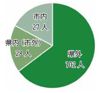 志布志市農業公社では、30年に渡る研修事業で、これまで157人の新規就農者を育成しています。研修生の多くを占めるのは、県外出身者ですが、市内の居住者で研修生となった方も27人にのぼります。