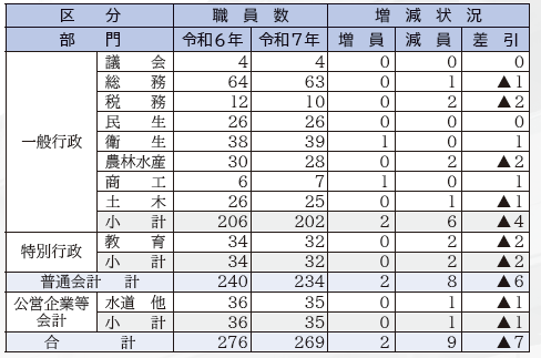 (3)部門別職員数の状況(令和7年4月1日現在)