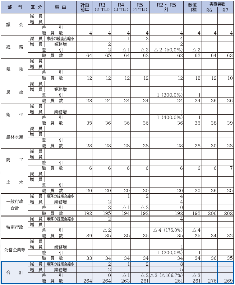 (9)定員適正化計画の年次別進捗状況(実績)の概要(令和7年4月1日現在)