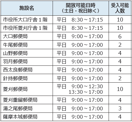 現在伊佐市が指定している指定暑熱避難施設は右表のとおりです。